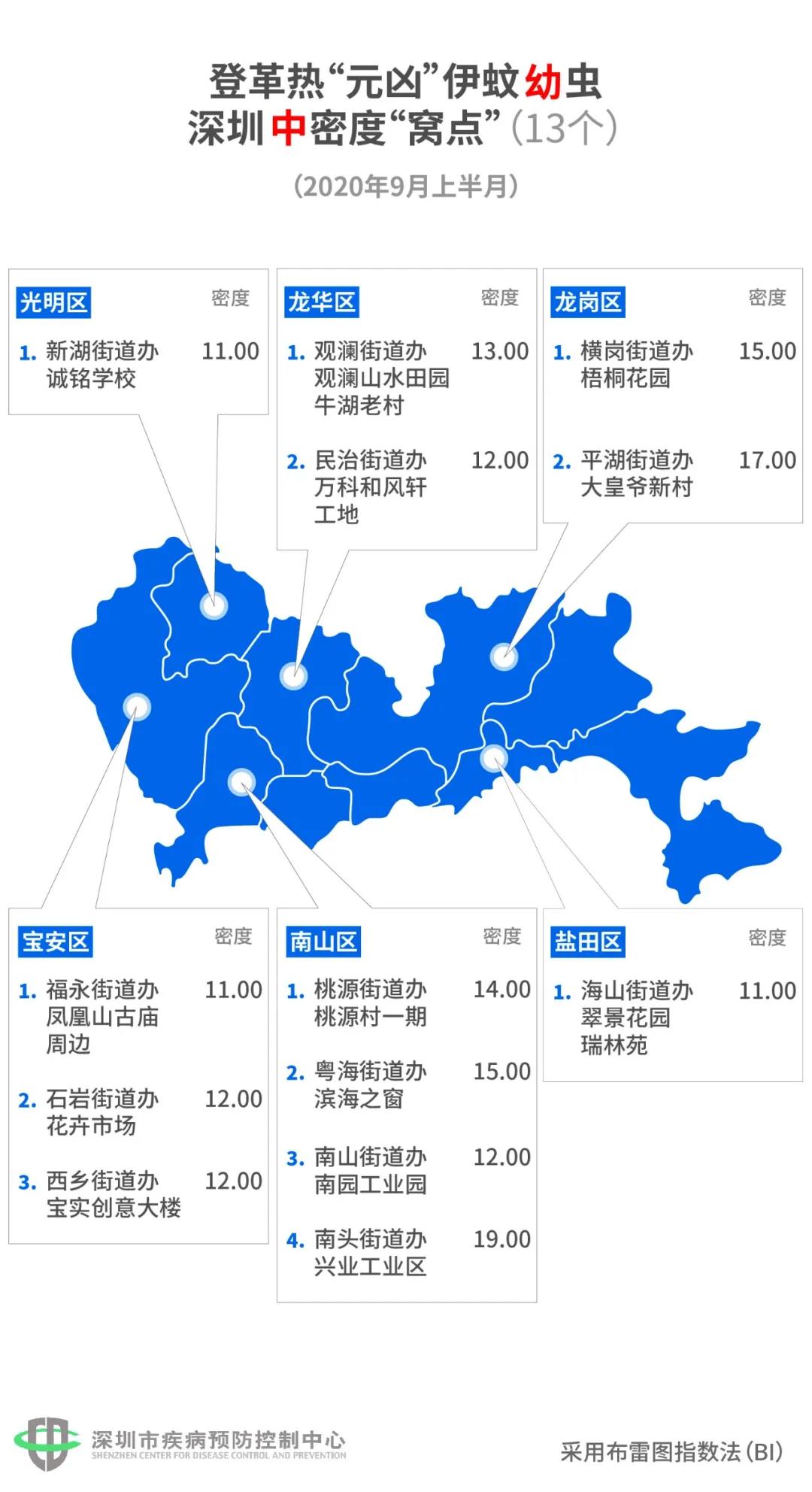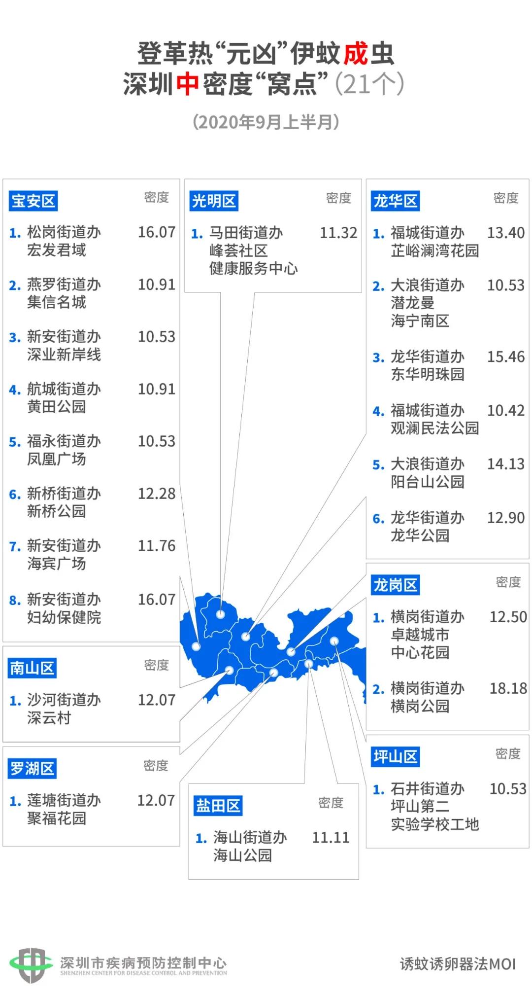 9月16日,深圳市疾控中心发布了9月上半月(9月1日-15日)的全市伊蚊密度监测结果。