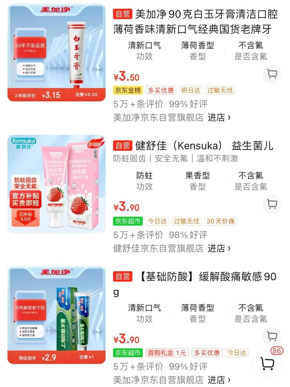 “近些年的牙膏,盒子越来越大,里面牙膏管越来越小” “以前都是2.9元、3.9元多一些,现在普遍19元、29元、39元了”。近日,“10块钱以下的牙膏消失了”相关话题登上热搜,迅速引起消费者们的共鸣:牙膏还真是越来越贵了。 不仅是价格,在包装和营销上,牙膏也越来越像是护肤品,新晋品牌越来越多。 在微博上,新浪热点发起过一个投票:为什么10元以下的牙膏越来越少。41%受访者认为是因为营销成本上升,31%受访者认为是因为牙膏美妆化,仅3%的受访者认为是因为原材料上涨。 近日,记者走访多家线下商超,发现即便是大众款的牙膏,目前价格的确普遍都在10元以上了。 在长沙一家屈臣氏门店,记者看到,这里的牙膏普遍是二三十元。最便宜的是舒克益生菌牙膏,每支25元。佳洁士锁白牙膏每支28元。好来(原黑人)酵素牙膏每支28元。售价最贵的是LG竹盐喜马拉雅粉盐双管牙膏,看上去像一只护肤精华,每支99元。其次是各种口味的玛尔仕牙膏,每支89元。中间价位的则是一些大众品牌的高端产品,比如好来深导白牙膏每支69.9元,高露洁奇绩修护牙膏每支59.9元。 在沃尔玛超市,记者寻找到两款10元以下的牙膏:高露洁全面防蛀牙膏每支9.9元,正在做活动的纳美小苏打牙膏19.9元3支,单支6.64元。 除了这两款外,沃尔玛的牙膏产品价格从十几元、二十几元到七十几元,几乎每个价位都有多款牙膏可选择。最贵的是云南白药朗健牙膏,主打去除烟渍功效,每支71.5元,但还是以10-30元区间的牙膏居多。 售货员告诉记者,消费者买的较多的还是十几元到二十几元的牙膏。她推荐记者购买高露洁一款按压牙膏的组合装,两支共59元。记者表示太贵,她表示:“你单独买一个是49.9元,一个是39.8元,一起买59元很划算了。” 总体而言,线下商超的牙膏价格都分布较为广泛,能满足不同消费者的需求,功能和口味基本上也较为常见。 在电商平台,牙膏在价格、功能、口味上都有点“超出想象”了。比如在京东,最贵的牙膏价格上五百,最便宜的却只要3.5元。 记者在京东平台按价格进行搜索,发现单价最贵的是一款瑞士Dr.wild怀尔德金色牙膏双重修复牙膏,单价为564元。这款牙膏的卖点看起来并不新鲜,如修复牙釉质、缓解牙敏,但“瑞士药房”几个字似乎瞬间将这款牙膏和普通牙膏拉开差距。 一些面对特殊人群的牙膏也价格不菲。比如奥乐加强型牙膏+牙刷,价格为176.4元,针对0-6岁儿童,产品宣传语表示是“专为蛀牙研发”。还有针对孕妇的牙膏。嫩芙叶酸牙膏108元,宣传语称“针对孕期女性研究”,“含有进口叶酸配方”。不过早就有专家指出,牙膏中的物质人体很少能吸收,其中添加的叶酸对孕妇影响几乎可以忽略不计。 益生菌牙膏是近年来较为流行的牙膏品类,往往主打“平衡菌群”,价格也不便宜。Tutk益生菌牙膏宣传语称可以平衡菌群、平衡口腔环境,每支138元;美克苏舒益生菌牙膏每支140元;momp益生菌牙膏每支155元。 一些消费者耳熟能详的大牌牙膏,在常见的平价款之外,也开发了百元的高端款。比如高露洁的进口酵素亮白牙膏,号称可以“28天逆转15年牙渍”“专研级·专利无水酵素配方”“释放亿万级美白洁氧分子”。听起来满满黑科技,每支103元左右。至于效果,评论处呈现两级,有人说:“白了”,也有人说“没什么用”。 想要在电商平台买到10元以下的牙膏,倒是十分容易。在京东,最便宜的是3.5元的美加净白玉牙膏,包装是红白两色,十分简单。美加净上海防酸牙膏也只要3.9元。佳洁士茶洁防蛀绿茶清新牙膏只要4.9元。这些十元以下的牙膏,基本上包装简单,功能也是常见的清新口气、防蛀等。 在拼多多,畅销款牙膏既有实惠便宜的老品牌,也有价格略高的新品牌。拼多多相关业务负责人告诉记者,20-30元价格带是目前卖得最好的区间。“畅销款式中,最便宜的一款是来自联合利华旗舰店的中华牙膏,一大一小两支6.89元;稍贵些的则是国产品牌参半的益生菌美白牙膏,2大4小活动价49.9元。” 参半是2018年成立的国产牙膏品牌,据创始人说,参半的“口腔鲨鱼”系列牙膏霸榜抖音牙膏品类第一。这个系列的牙膏将各种数据、字母缩写印在牙膏包装上,走的是当下流行的“成分党”风格。 牙膏正在变成精致化妆品 据Wind数据,2022年10月,120克左右普通牙膏均价为11.35元/盒,较2018年相比,五年涨价25%。 据艾媒咨询线下调研,在大型商超售卖的四五十种牙膏中,牙膏价格在10-20元之间的占六成,20元以上占比35%,而10元以下只有两三种。艾媒咨询CEO兼首席分析师张毅表示,牙膏企业的主要研发成本费率一般在3%左右,成本高主要是高在广告投放、代言等营销成本上。 在微博上,新浪热点发起过一个投票:为什么10元以下的牙膏越来越少。41%受访者认为是因为营销成本上升,31%受访者认为是因为牙膏美妆化,仅3%的受访者认为是因为原材料上涨。 去年5月,好来牙膏官宣代言人肖战,佳洁士选择欧阳娜娜作为品牌大使,高露洁氨基酸牙膏则打上了“王一博同款”……都是当红明星。 2021年,《化妆品监督管理条例》进行了30年以来第一次修订,牙膏正式被纳入化妆品范畴。事实上,近年来,牙膏的确呈现出“美妆化”趋势。跟护肤品一样,牙膏也开始变得多种多样,“卷”起了成分、功能、香味。 今年6月,京东超市发布《2023年京东口腔护理行业趋势洞察白皮书》(以下简称《白皮书》)。《白皮书》显示,2023年中国