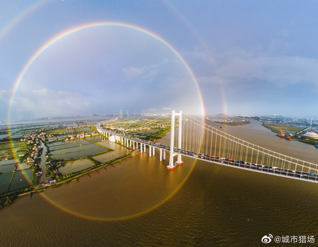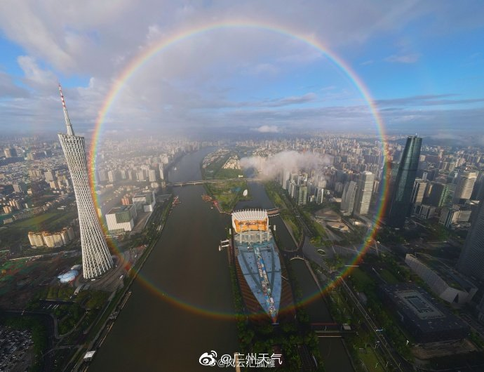 今早 双彩虹再度“光顾”广州 有网友记录下了 据悉,“双彩虹”是一种比较罕见的大气现象,包含主虹和副虹,均是大气中水滴在阳光照射下发生折射和反射形成的。主虹形成时,太阳光先从水滴前端进入,进入时发生折射分解成七色光,再在水滴后端发生反射,七色光在水滴中反射回水滴前端射出,我们就看到了美丽的彩虹。当光在水滴中发生两次反射,形成的就是副虹。同时由于地球表面的大气层为一个弧面从而导致了阳光在表面折射形成了我们所见到的弧形彩虹。 再来关注一下天气情况吧 ↓↓↓ 目前广东多地已强势跻身“高温榜” 出门记得带伞 综合来源:@广东天气、@广州天气、微博网友@风云汇孤雁、新华社 |