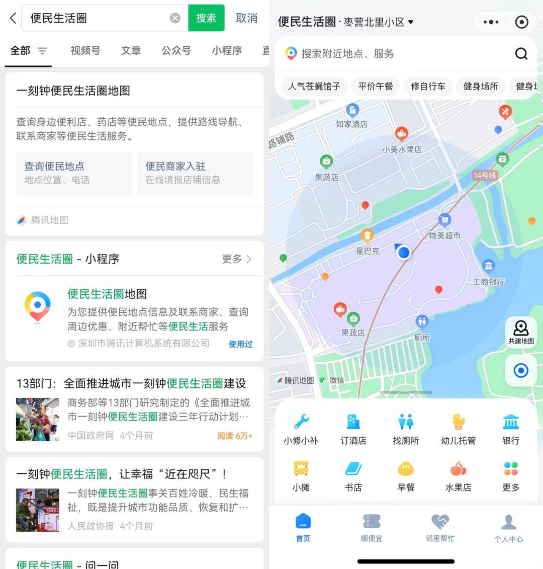基于商务部对于便民生活圈内“基本保障类”、“品质提升类”便民网点的分型要求,该地图囊括了全国300+城市的40+便民网点类型,用户通过微信或者腾讯地图App搜索“便民生活圈”即可进入,并且支持用户搜索不同的便民小店门类,进入相应主题地图;地图还涵盖了“哪便宜”、“邻里帮忙”两大版块,前者可提供周边商超美食、娱乐休闲优惠信息,后者基于腾讯地图位置服务能力,为有临时、紧急需求的市民提供线上互助社区。便民地图同时新增多项商户权益,比如商家入驻地图后可开通微信客服,方便附近居民直接联系店主。通过“小修小补便民地图”和“一刻钟便民生活圈地图”的共建入口,便民商户可快速入驻地图,市民也可以成为地图的“共建者”,随时随地上传没有被地图收录的民生小店,共建美好社区。而仅在第一阶段,通过“小修小补”引路行动新上传至数字地图的小店就超过6万家。“小修小补”主题地图得益于全社会的共参与、共建设、共维护。全国近百家媒体加入到项目宣传、地图入口共建之中,特别是通过媒体微信公众号、客户端等平台链接数字地图,为本地市民提供便捷的数字化服务。此外,视频号还将同步发起“小修小补”引路行动全面升级的主题活动,@我是十二是我 @时尚奶奶@主持人叶琼 等10位各地的视频号创作者,共同倡议全国创作者深入挖掘当地的修补小店故事,让更多人感受到烟火温度。从街角巷尾的“小修小补”到早餐店、菜店,所有等便民小店都是保障民生需求的基本单元,是畅通城市经济微循环的有效载体。接下来,“小修小补”引路行动2.0还将持续升级能力,引导更多个人及组织开展地图共建,持续提升便民体验,为广大居民提供生活便利。