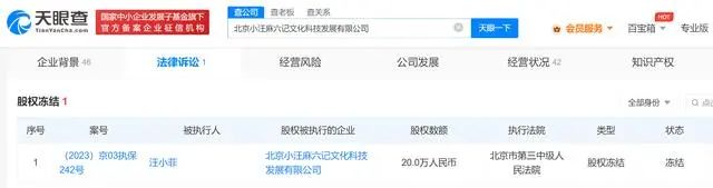 除了这笔高达748万余元的执行令外,风险信息还显示,此前,汪小菲所持有的三家公司,包括合润麟(北京)食品有限公司、北京合尊置业有限责任公司、北京小汪麻六记文化科技发展有限公司的大量股权也遭到了冻结。