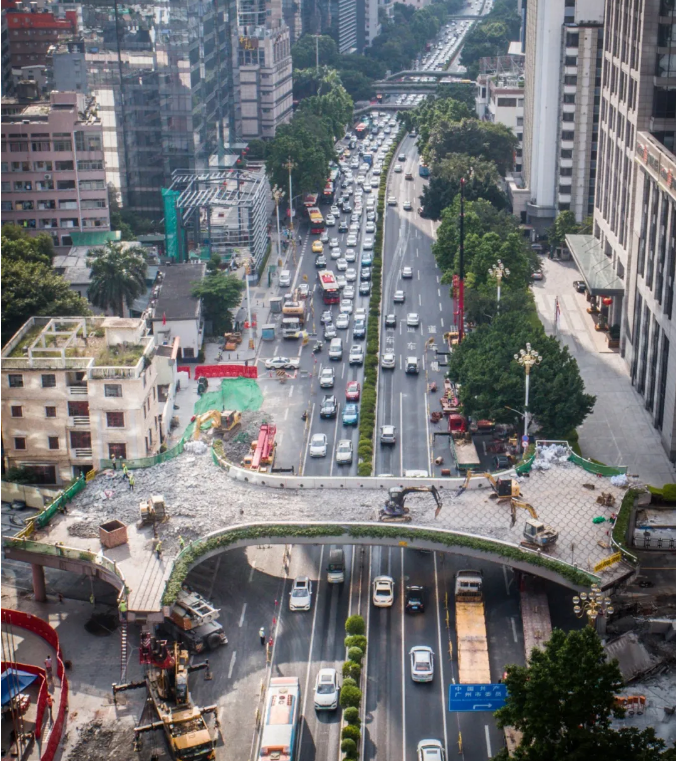 10月3日, 伴随轰隆隆的巨响, 德政北路过街天桥已开始拆除, 记者在现场看到, 目前天桥上桥坡道和楼梯已被拆除, 主体桥面正在施工。 航拍正在拆除的德政北路与东风路交界的人行天桥。本文摄影:信息时报记者 胡瀛斌 日前,广州地铁通报,从10月2日凌晨起,德政北路(豪贤路至东风路路段、法政路至东风路路段)将实施围蔽施工,拆除德政北路过街天桥,并新建过街通道。 10月3日,过街天桥已经开始施工拆除,现场有2辆吊车和多辆挖掘机正在作业,期间还有喷淋设备镇尘清灰。 航拍正在拆除的德政北路与东风路交界的人行天桥。 当前,车流人流较大的东风中路围蔽范围从13号线仓边路站施工处向东约一公里处,该路段4车道缩减为2车道,两轮车和行人不得通行,需在仓边路或豪贤路绕行。围蔽处有交通协管员为市民绕行提供指引。此外,围蔽范围内还有正骨医院公交站,一名交通协管员告诉记者,该站停靠的车辆暂时在正骨医院①号站停靠。 受德政北路与东风路交界的人行天桥围蔽拆除影响,东风路东西方向双向10车道变为双向4车道。 记者在现场看到,由于车道变少,这一路段出现车辆拥堵情况,不少行人和骑单车的人不清楚绕行情况,被交通协管员劝离。市民胡女士带着女儿前往少年儿童图书馆,“不知道要拆除天桥,往常都是走这条路,现在就只能绕一下了。” 受德政北路与东风路交界的人行天桥围蔽拆除影响,东风路东西方向双向10车道变为双向4车道,造成车辆堵塞。 受德政北路与东风路交界的人行天桥围蔽拆除影响,东风路西往东方向的5车道变为2车道。 现场执勤的交通协警告诉记者,这一路段的围蔽将会持续到10月8日,最迟10月8日恢复路面4车道,车辆可以正常通行,行人则还需绕行。 现场交通疏导员正在疏导交通。 正在拆除的德政北路与东风路交界的人行天桥附近,工人正在作业。 据了解,德政北路天桥曾是广州投资最高、宽度最大的天桥。1994年5月1日德政北路人行天桥落成并交付使用,该天桥总投资1000万元,跨度54米,最宽处33米,是广州市第一座投资超过1000万元的人行天桥,也是当时广州市最宽的人行天桥。 市民夏先生在路边围观施工,面对已经拆除的德政北路天桥,他表示有点遗憾, 正在拆除的德政北路与东风路交界的人行天桥附近,工人正在作业。 德政北路天桥拆除后,将新建过街通道与十三号线二期仓边路站出入口连通,以实现与地铁的无缝衔接,更好地改善过街服务功能,方便市民出行。 这一阶段施工对德政北路(豪贤路至东风路路段、法政路至东风路路段)实施围蔽,进行地铁车站及地下过街通道施工。届时,德政北路(法政路至东风路路段)由双向3车道变为双向2车道。施工围蔽将持续至2021年12月31日。 据广州地铁通报,德政北路(豪贤路至东风路路段、法政路至东风路路段)施工区域将分两个阶段围蔽。 第一阶段:计划从2020年10月2日至2021年12月31日,对德政北路(豪贤路至东风路路段、法政路至东风路路段)实施围蔽,进行地铁车站及地下过街通道施工。届时,德政北路(法政路至东风路路段)由双向3车道变为双向2车道。德政北路(豪贤路至东风路路段)全封闭,原需从东风中路西往东方向右转进入德政北路的车辆,可通过东风东路绕行越秀北路进入豪贤路行驶;原豪贤路东往西方向右转德政北路进入东风中路的车辆,可通过豪贤路绕行仓边路进入东风中路行驶。原需通过德政北路人行天桥过街的市民,可绕行西侧小北路或东侧越秀北路人行天桥。 第二阶段:计划从10月4日20时至10月5日8时,对东风东路(仓边路至越秀北路段)实施临时封闭,进行天桥拆除作业。届时,该路段西行车辆可绕行越秀北路、法政路、小北路、东风路通行。东行车辆可绕行仓边路、中山三路、越秀北路、东风路。 (注:以上车站名称仅为工程暂定名称,标准站名应以市政府批准公布为准。) 来源:信息时报 |