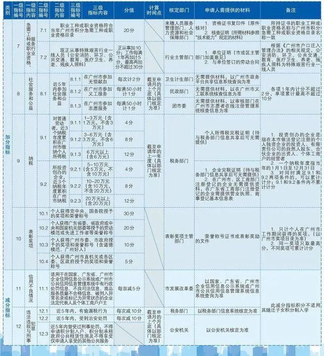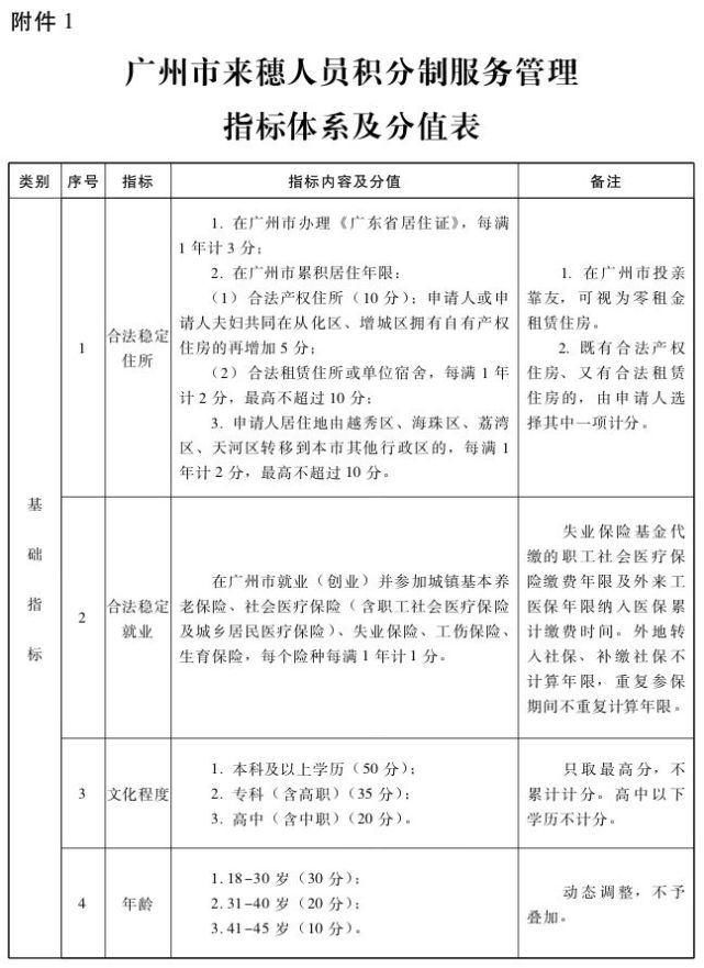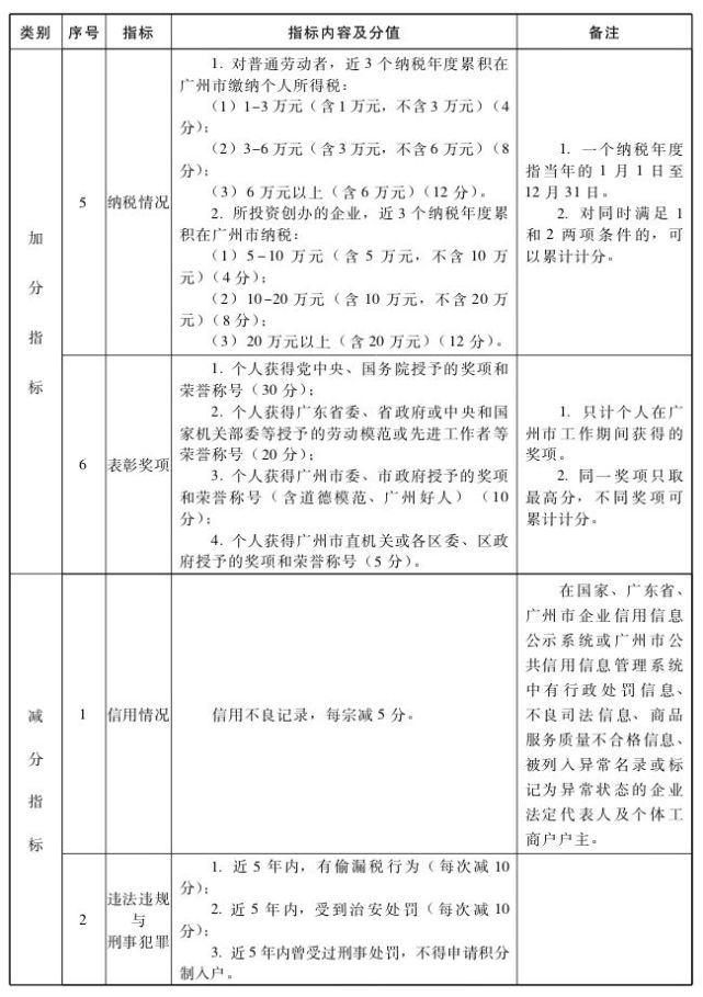 我们在广州生活打拼 有人为了小孩的教育 有人为了买房买车 有人因为以后的养老福利 ...... 都迫切的希望早日入户广州 广州户口是扎根广州的必需品 今天就来给大家讲讲:积分入户广州都有哪些积分项目?有什么申请条件?要怎么申请?超详细解答一起来看看! 积分入户指标及分值表 基本指标 文化程度、合法稳定居住、合法稳定就业、年龄 加分指标 技术能力、创新创业、急需工种或职业资格或服务行业、社会服务和公益、纳税情况、表彰奖励 减分指标 信用情况、违法违规与刑事犯罪(其中,信用不良记录每宗减5分) 积分入户基本条件 申请入户广州市须同时符合以下条件 年龄45周岁以下 年龄45周岁以下。 持本市办理有效《广东省居住证》 持有在广州市办理的《广东省居住证》,且在有效期内。 在本市合法稳定就业或创业并缴纳社会保险满4年 申请人须同时满足以下条件: 社保年限计算方法: 1、社会保险计算在广州地区缴纳年限,外地转入社保、补缴社保不计算年限,重复参保期间不重复计算年限。 2、已领取了失业待遇的申请人,其原失业保险参保年限纳入累计缴费时间。 3、以往参加了非广州市城镇户籍从业人员基本医疗保险的申请人,其缴纳非广州市城镇户籍从业人员基本医疗保险时间纳入累计缴纳时间。 核定积分总分数满100分 申请人在“广州市来穗人员积分制服务管理信息系统”已确认的积分总分值满100分,且不在积分异议或积分调整流程中。 未受刑事处罚 近5年未受过刑事处罚。 积分入户排名规则 1、积分制入户申请人的排名按照在“广州市来穗人员积分制服务管理信息系统”核定积分总分值从高到低进行排名。 2、分值相同时按照在本市缴纳社会医疗保险时间排名; 3、在本市缴纳社会医疗保险时间排名相同的情况下,按照在我市连续办理《广东省居住证》的时间排名。 4、凡经两轮排名后排序相同,作并列排名处理。凡并列排名者具有同等积分制入户资格。 提醒 说了这么多 大家是不是想知道自己的分值有多少? 赶紧算一算吧 申请积分入户 需要先核定好积分 然后准备好相关资料 才能前往申请哦! 核定积分申请资料清单 文字内容太复杂 直接给你上个图片版 积分入户申请资料 窗口核验材料(预审排名靠前人员提交原件核验) 1、《广州市积分制入户申请表》(本人到受理窗口亲笔填写并签名确认“本人承诺”栏有关内容) 2、户口簿 3、身份证 4、如有随迁人员,同时携一下材料核验: (1)随迁配偶须提供户口簿、身份证、结婚证 (2)随迁子女须提供户口簿、《出生医学证明》 注意: 2019年积分制入户推行“网上承诺制”,将申请人到受理窗口核验原件并受理的流程后置。申请人在申请前期无需前往受理点提交个人资料,只需承诺材料的真实性与准确性即可通过系统提交入户申请。各受理点及职能部门根据申请材料进行预审,并按照积分排名原则形成“预审通过排名靠前人员名单”。 名单内的申请人(可登录网站本人账号进行查询)在规定时间内前往《广东省居住证》所在的镇(街)来穗人员和出租屋服务管理中心(政务服务中心)的积分制入户受理窗口,提交材料原件核验并受理。 这个很重要! 大家一定要重视哦! 积分入户申报流程 学委提醒: 网上提交申请地址:广州市来穗人员积分制服务管理信息系统( https://113.108.174.59/bjfpublic/proxy/skin_1/index) 积分入户落户顺序 落户地址应按照以下顺序选择填报: 1、自己有房:在本人或直系亲属拥有产权并供其居住的住宅房屋地址登记入户; 2、单位有房:本人或直系亲属没有自有产权住宅房屋的,在政府或用人单位拥有产权供其居住的住宅房屋地址登记入户; 3、单位集体户/人才市场集体户:没有以上规定住所的,可在工作单位集体户、人力资源市场集体户或居住证所在地所属的公共集体户入户。 说了这么多 你的分值达到100分的申请条件了吗? 有希望挤进入户大军的行列中吗? 让我们先来看看 这两年的广州积分入户情况如何 2018年 最高积分: 292分 最低积分: 169分 2019年 最高分: 277分 最低分: 166分 *以上分数仅供参考 来源:ZAKER |