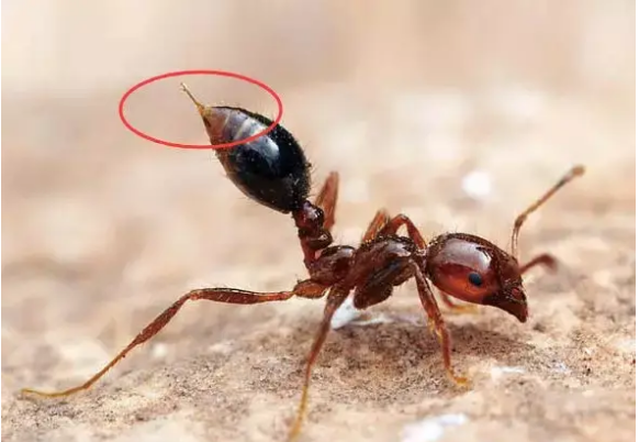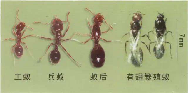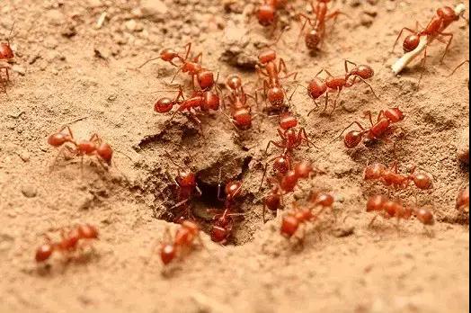 ●观察蚂蚁巢穴 红火蚁常在农田、荒地、绿化带、路边、果园、公园、堤坝等地发生,蚁丘高10-30厘米,直径30-50厘米,内部结构呈蜂窝状。巢穴可作为红火蚁的识别特征之一。 ●观察蚁群颜色 如果蚁巢外面有工蚁活动,便可通过观察蚂蚁颜色初步判断。红火蚁在阳光下为亮棕红色,体长3-9mm。 ●试探蚂蚁的攻击性 当红火蚁的蚁巢受到干扰时,工蚁会迅速涌出巢穴,攻击入侵者。据此,我们可以用棍子迅速插入蚁丘,观察其攻击性。 ●观察蚂蚁的头部红火蚁头部略成方形,后头中央有明显的凹陷,上颚发达,内缘有4个明显的小齿。 ●观察蚂蚁的腹柄结 红火蚁腹部背板呈深褐色,前胸背板前端隆起,胸腹连接处有两个腹柄结,第一结节呈现倒“V”状,第二结节呈圆锥状。 ●观察是否有螯针红火蚁腹部呈卵圆形,末端有螯针伸出。这是红火蚁最危险的部分,螯针内有毒液。