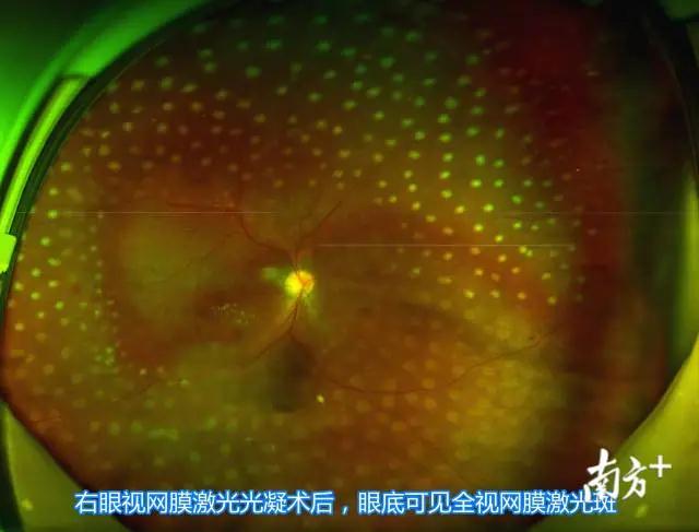 进行了全视网膜激光光凝术和抗VEGF治疗,改善视网膜缺血,稳定和增进视力,预防和阻止视网膜新生血管的发展,以防进一步发生玻璃体积血、视网膜增殖膜和牵拉性视网膜脱离等。但对于他病情较重,已近无光感的左眼,马红婕坦言,预计术后提高左眼视力的可能性不高。