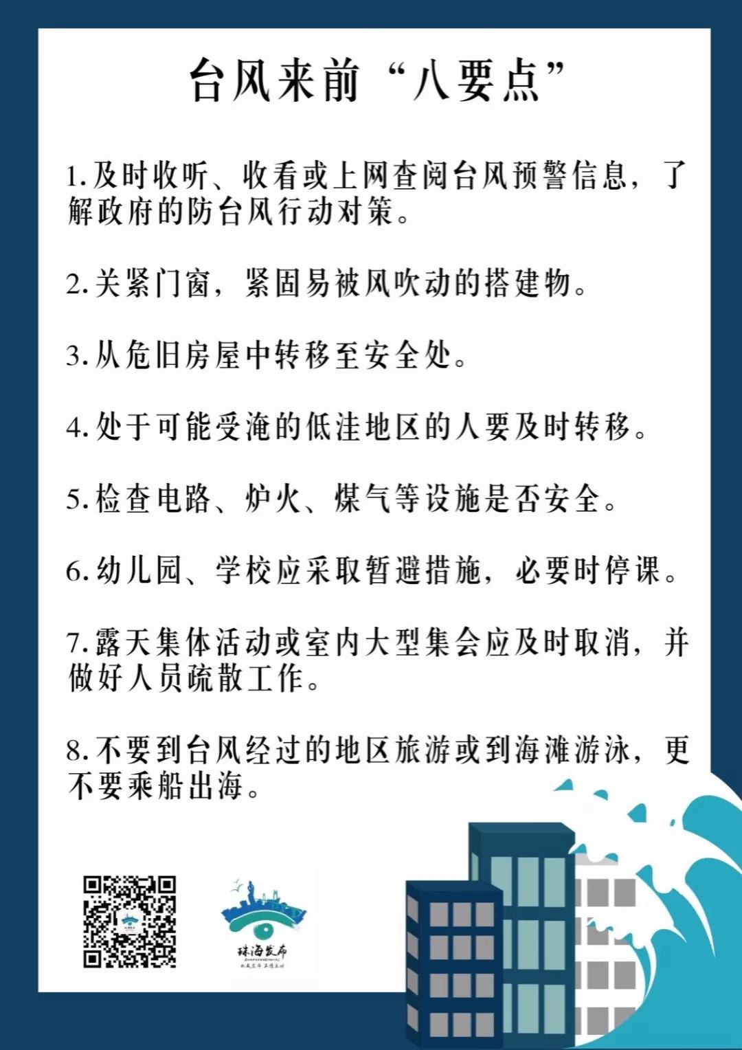 扩散提醒! 珠海市台风白色预警生效! 据市气象局消息, 南海中北部今天下午有新热带低压生成, 20时位于我市 东南方790公里的南海海面上, 预计其将向西北偏西方向移动, 趋向海南和雷州半岛附近海域, 较大可能加强为今年第16号台风。 受冷空气和台风共同影响, 12日夜间起我市转阵雨, 海面风力逐渐加大; 13-14日有暴雨,局部大暴雨, 海面及沿岸阵风可达8-10级。 市气象局已于10月11日20时55分 发布珠海市台风白色预警信号。 赶紧收好这份台风避险指南, 关注台风动向,做好防御工作。 来源:珠海市气象局 |