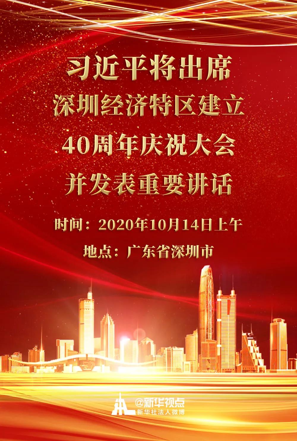 : 深圳经济特区建立40周年庆祝大会14日上午举行习近平将出席大会并发表重要讲话深圳经济特区建立40周年庆祝大会将于14日上午在广东省深圳市隆重举行。中共中央总书记、国家主席、中央军委主席习近平将出席大会并发表重 ...