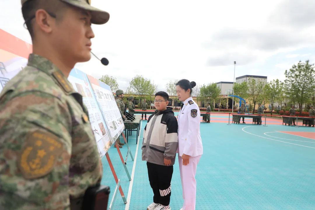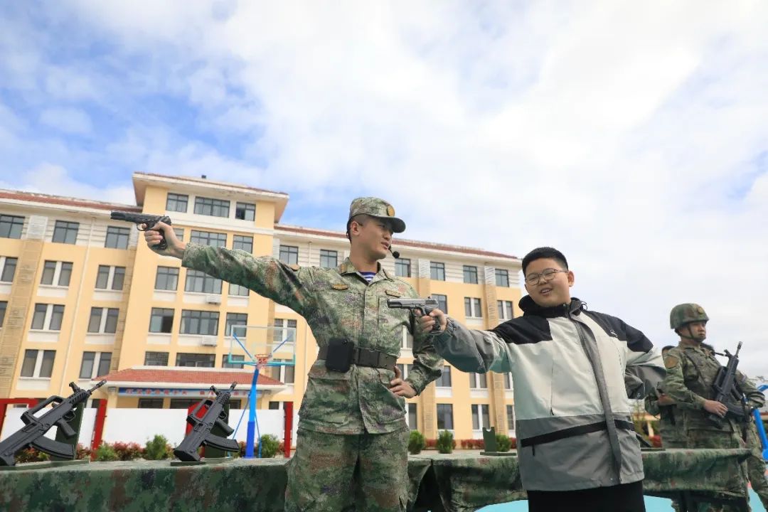 带有北海舰队标识的纪念品 有T恤衫、保温杯、充电宝 北海舰队徽章、纪念章 在毛豆妈妈的视频里 有一支断了把手的玩具枪 被毛豆用胶带粘了又粘 官兵们看出了毛豆对枪械的喜欢 所以,这次的军营开放日 为毛豆安排了枪械体验环节 从讲述中国枪械发展史 到亲身体验手枪、步枪 毛豆都听得格外认真