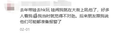 相似的事情在小红书上也能看到,有网友说带小孩去香港玩的时候吼了小孩几句差点被路人报警。