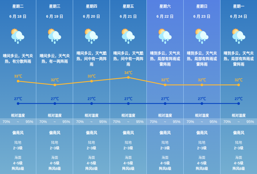未来几天 随着副热带高压加强北抬 阳光增多,天气渐趋炎热