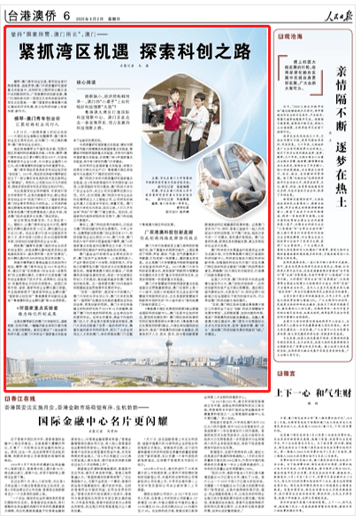 日前,人民日报刊登文章深谈珠澳科创合作,并特别点赞了以科创合作为代表的珠澳产业同城。