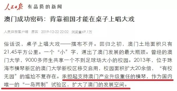 早在2019年年初澳门回归20周年之际,人民日报就发文点评,澳门未来要成功,核心是产业升级,而产业升级的希望,就在珠海横琴。