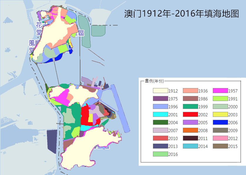 澳门近100年填海区域图