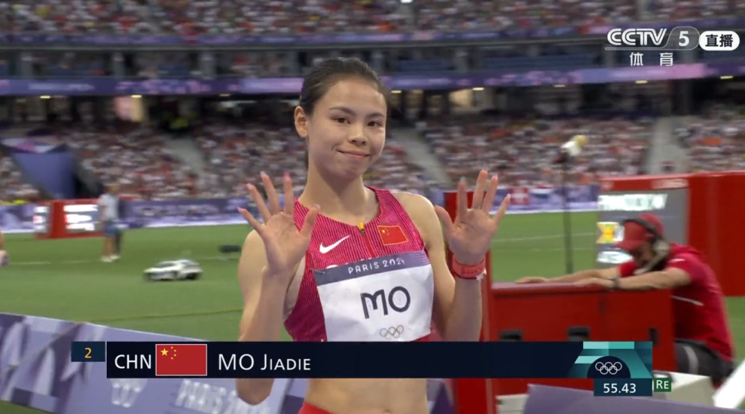 最终以55秒63的成绩冲过终点,