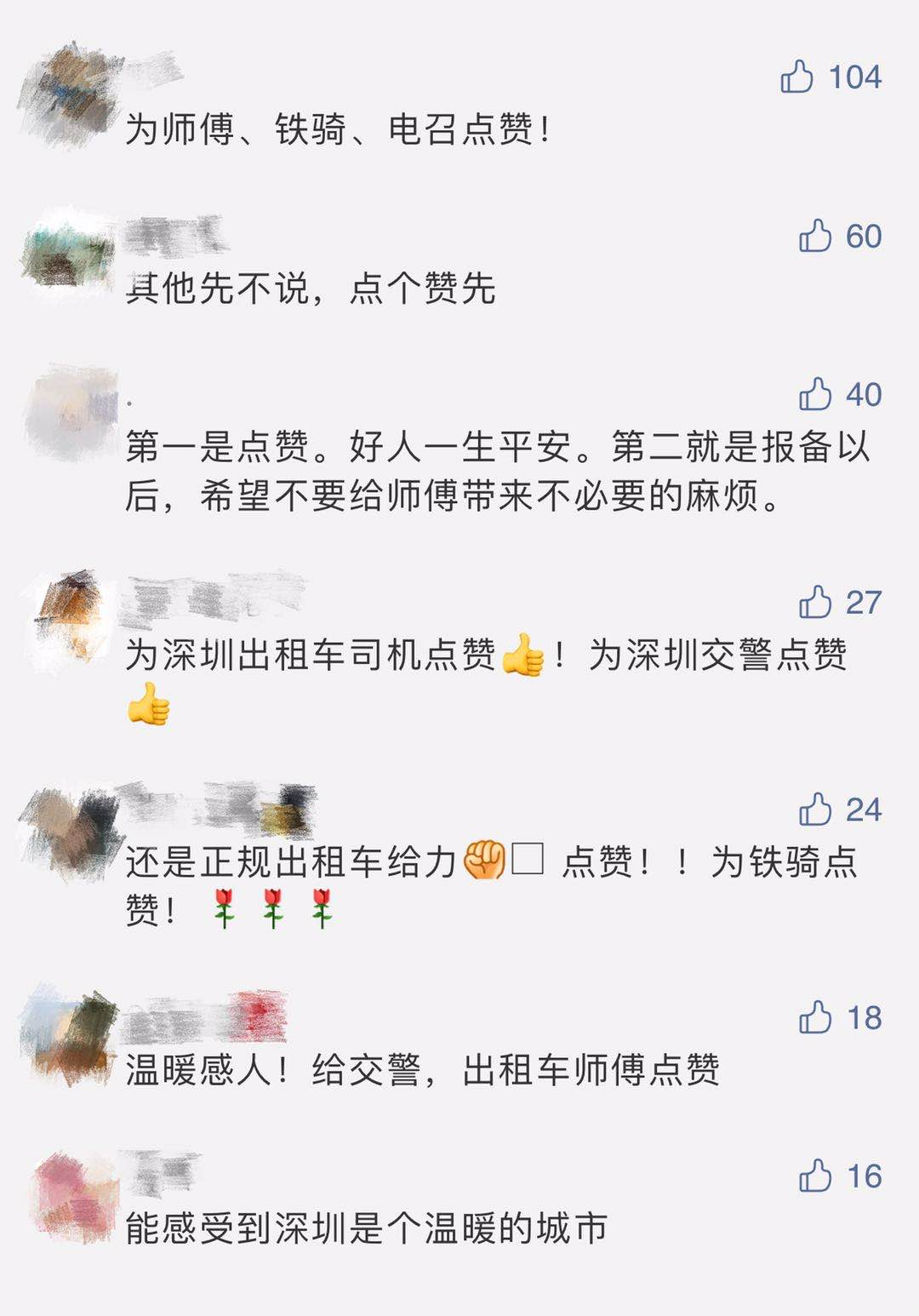 在深圳,有这么一群人 无论白天黑夜 他们都兢兢业业的 穿梭在城市的大街小巷 默默的做着这个城市的“摆渡者” 说的就是出租车司机 平时他们只是众多普通人中的一个 但是,遇到危机情况 他们就会化身超级英雄 不信你看! 小孩高烧呕吐不止 深圳的哥连闯红灯10分钟送医 10月23号晚上21:50左右,出租车司机王文接到来自“深圳出租”的紧急电召(叫出租车的一种方式)。 当王师傅到达预约地大望村委的时候,三个神色焦急的人在等待着他,其中一人抱着孩子。王师傅急忙停好车并让他们上车。 经了解,车内小孩正在发高烧并且一直在呕吐,情况危急,家人希望王师傅尽快将他们送到最近的医院。 了解情况后,王师傅马上驾车将他们送到深圳市百合医院,但没想到由于疫情防控,百合医院没办法接诊,他们只好改道去深圳市第三人民医院。 当时,路面的车还是比较多的,正在着急万分的时候,王师傅看到了交警铁骑,他立马叫住了铁骑并告知紧急情况。 交警了解情况后,指示王师傅跟着他的路线,尽快将小孩送达医院救治。 为了给孩子争取最快的救治时间,铁骑带着王师傅的车一路压了实线也闯了红灯,终于在22:00将危急的孩子送到医院。 到达医院后,王师傅配合家属将孩子送到了急诊室,他才默默离开。 回到车里后,王师傅将因给孩子争取就医时间造成的违章行为对铁骑和110进行了报备。 司机和交警小小的一个举动 让无数人直呼感动 其实,在深圳 这样温暖的的故事还有很多 孕妇出租车上产子的哥一路飙车将其送医2019年7月份的一天晚上10点多,从罗湖去龙岗的出租车上一位孕妇突然生产,司机师傅紧急报警,一路飙车将其送到医院,最终母女平安。 由于生产,车辆的后座留有血迹,谭师傅无法继续营运,等到第二天,才将车拉到洗车店清洗。 谭师傅称:“虽因此耽搁了一晚上的营运,但看到她们母女平安,我感到非常值。” 91岁老人医院乘车 2018年11月30日,深圳9旬老人突发病痛凌晨就医,好心的哥姚师傅在载老人与其太太返程时,主动下车爬楼梯护送老人到家门口。 姚师傅当天把邬女士和其老伴送回家以后,姚女士拿出100块想感谢姚师傅,却被姚师傅婉拒了,“老人家说要感谢,我走的时候把钱从门缝了放进去了”。 的哥为救小孩 晚高峰逆行狂奔 2017年11月14号的晚高峰时段,当深圳的哥刘师傅的车开在福田莲花路上时,突然被五名神色慌张的市民给拦了下来。原来孩子突发疾病,得赶紧送院! 了解情况后的刘师傅一路逆行狂奔,把孩子送到了医院,因为刘师傅及时果断的决定,孩子家长从上车到医院全程不到十分钟。因抢救及时小孩已无大碍。过去的岁月里 你或许经历了很多事 |