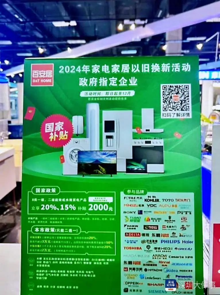 作为市民最“触手可及”的领域,家电市场反响最为热烈。“补贴最高10%-20%,单品上限1000-2000元”,中秋假期首日,走进福田区的卓悦汇商场,醒目的“深圳市2024加力支持家电产品以旧换新购置补贴”提示牌映入眼帘。