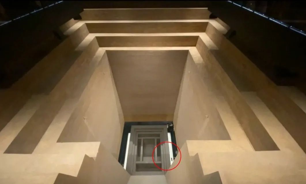 视频显示,在棺椁旁边的台面上,躺着一台手机。旁边一位工作人员正在打电话处理。视频发布者称,“哥们,你是怎么把手机跨过层层台阶,从17米高砸到辛追夫人棺椁上的,2000多年的木椁终是让你给砸了个坑啊……”