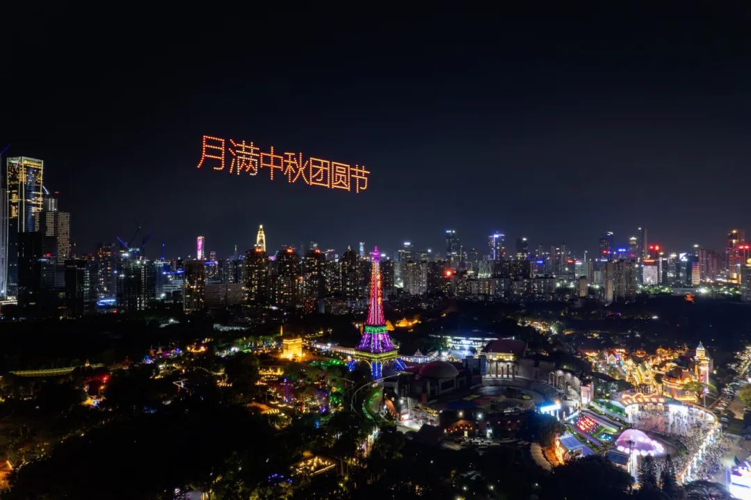 深圳世界之窗无人机展演。深圳特区报记者 杨浩翰 摄