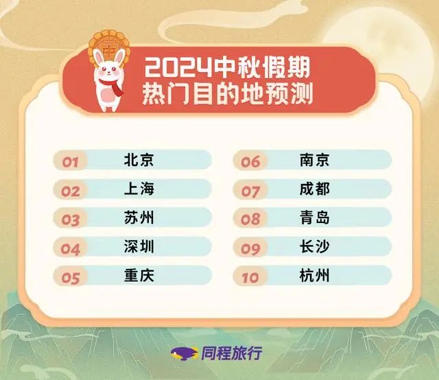 同程旅行数据显示,深圳市位列中秋假期旅行热度最高的目的地第四名;飞猪数据显示,深圳市凭借着丰富的周边游资源跻身国内热门目的地前十名;携程数据显示,深圳市位列中秋假期国内热门目的地第七名。另外,由于其经济活力和人口基数,深圳依然是一个重要的旅游客源地,为周边旅游目的地输送大量游客。途牛数据显示,深圳位列中秋假期出游热门客源地第六名。