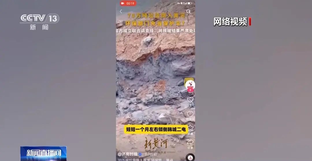 2024年8月28日,“陕西韩城市一男子在抖音平台实名举报当地‘70万吨垃圾倒入黄河’、企业违规倾倒填埋垃圾、环保部门充当企业保护伞”,随后该话题在网络上引发热议,几天之内舆情不断发酵,截至9月3日,已扩散4000多条,事关重大,总台记者立刻赴陕西韩城市进行调查。 为查明真相,记者第一时间赶赴陕西韩城市五里桥沟现场,生态环境部的几名专家正在对视频中提到的问题进行现场核查,专家介绍,70万吨垃圾就是指现场的这片梯田下面填埋的粉煤灰。