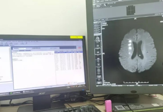李医生告诉记者,有的片子还有这样的错误:拍片子时,患者是面对医生的,片子上的左侧实际为患者的右侧,但有患者的病历诊断上写着“大脑左侧梗塞”,她的片子显示是右侧:“(患者)年龄73,这个报告内容,左侧基底节区梗塞,实际上这个是哪里?这叫右侧,也就是一个人站到你对面看的图像,这就是后填的假图像。”