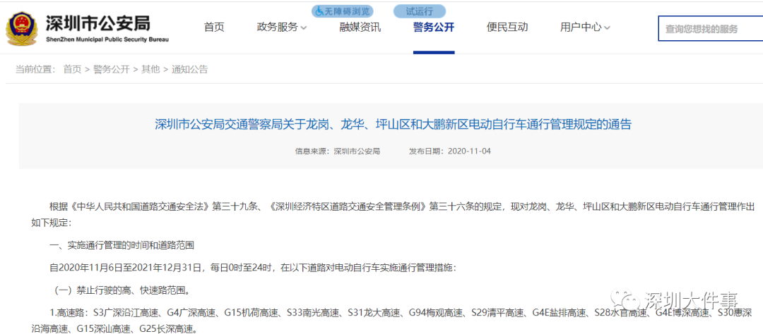 骑上我心爱的电单车 它永远不会堵车 小小的一辆电动自行车 如今是不少人的代步工具 不仅骑行方便 关键还很经济实惠! 但今天要提醒大家! 骑电动车要注意了! 11月4日 深圳市公安局交通警察局发布了 关于龙岗、龙华、坪山区和大鹏新区 电动自行车通行管理规定的通告 根据《中华人民共和国道路交通安全法》第三十九条、《深圳经济特区道路交通安全管理条例》第三十六条的规定,现对龙岗、龙华、坪山区和大鹏新区电动自行车通行管理作出如下规定 自2020年11月6日至2021年12月31日,每日0时至24时,在多道路对电动自行车实施通行管理措施。 也就是说,从今天开始深圳多路段禁行电动自行车!一起来围观下!01 禁止行驶的高、快速路范围 高速路:S3广深沿江高速、G4广深高速、G15机荷高速、S33南光高速、S31龙大高速、G94梅观高速、S29清平高速、G4E盐排高速、S28水官高速、G4E博深高速、S30惠深沿海高速、G15深汕高速、G25长深高速。 快速路:盐龙大道,丹平快速路,北环大道,南坪快速路、福龙路、机场南路、滨河大道,滨海大道、兴海大道。 02 龙岗区限制行驶道路 惠盐公路,沙荷路,新龙路,同心路,环城南路,环城东路,同力路,同庆路,乐园路,龙湖路,吉祥路,龙翔大道,盛龙路,龙园路,龙河路,碧新路,新生路,植物园路,龙岗路,鹏达路,丹沙路,龙平路(含龙平东路、龙平西路),城园路,龙福路,建设路,德政路,清林路,龙城中路,龙城南路,吉祥中路,富坪路,同富路,龙飞大道,风采路,青春路,如意路(含如意中路、如意南路),飞扬路,清辉路,清水路,丰田路,黄阁路(含黄阁中路、黄阁南路),爱南路,清风大道、高科大道,宝龙大道,南同大道,锦龙大道(龙岗段),五和大道,冲之大道,张衡路,稼先路,隆平路,贝尔路,雅园路,永香路,坂雪岗大道,坂澜大道,坂李大道(五和大道与航嘉大道交汇处),环城北路,新横坪路(龙岗段),凤凰大道,平湖大街,富安大道,平吉大道,东深公路(东莞雁田加油站至良田路建材市场),丹平公路,坪地湖田路,平龙路,平安大道,粤宝路,吉华路,环城路,三联路,金利路,金龙路,长龙路,华龙路,长盛路,长青路,宝丽路,龙岭路,八约一街,八约二街,布吉路,莲花路,联布北路,金运路,中兴路,铁东路,新乐路,铁西路,百花一街,百花二街,锦龙路,湖南路,中元路,吉政路,政清路,广场路,布沙路,育苗路,湖西路,中翠路,百鸽路,荣华路,禾坑路,罗岗路,金鹏路,科技园路,布澜路,景芬路,东西干道,国芬路,星火路,西环路,新红棉路,宝荷大道,龙岗大道,深汕路,布龙路(龙岗段)。 03 龙华区限制行驶道路 深圳北站周边道路(含留仙大道致远中路口至民塘路口段、玉龙路民塘路口至致远中路口段、民塘路、致远中路玉龙路口至留仙大道路口段),白石龙路,观光路,民治大道,民旺路,民宝路,工业路,龙华公园路(工业路口至人民路口),龙华大道,民康路,民丰路,民乐路,民兴路,民治民福北路,华霆路,华丰路,华昌路,华发路,华荣路,华兴路,华繁路,华宁路,华盛路,浪荣路,浪花路,浪静路,东环一路,东环二路,龙华人民路,中环路,腾龙路,三联路,龙华和平路,新区大道,清湖路,龙观大道,龙胜路,观澜大道,人民路,观平路,高尔夫大道,观天路,环观中路,环观南路,福前路,大浪南路,建辉路,景龙建设路,清泉路,清华路,雪岗北路,民清路,油松路,桂月路,章企路,华旺路,华达路,华悦路,留仙大道(龙华段),布龙路(龙华段)。 04 坪山区禁止行驶道路 1、路段(由南及北排列): 坪山大道(沙坑二路-汤坑路段)、丹梓西路(深汕路-站前路段)、绿梓大道、深汕路(坪山段,不含辅道内的非机动车道)。 2、立交及跨线桥上跨段(具体范围以分、合流点为准): 丹梓大道-绿梓大道立交。 05 大鹏新区禁止行驶道路 坪西路(葵新南路-迭福立交段)、深葵路(背仔角-溪坪南路段)、葵坝路。 但是也并不是说 所有的电动自行车 都不能在这些道路上行驶 除高速、快速路外 民生服务行业所使用的电动自行车 不受上述禁止行驶措施限制 具体行业范围包括 (一)医疗卫生; (二)邮政、快递、报刊投递; (三)电力、供水、燃气、电信通讯等公共设施抢修; (四)环卫清洁; (五)外卖配送及瓶装燃气、桶装饮用水、鲜奶运送; (六)农贸(农批)市场商户销售和配送货物。 除此之外 还要提醒大家 11月2日起 深圳交警已经在全市范围内 严查严管电动车 尤其是在已经实施电动车备案的 宝安区、光明区、坪山区、大鹏新区 在路面现场查处的基础上 深圳交警还将试点采取非现场执法的方式 开展重点抓拍电动车走机动车道、冲红灯、逆行 从11月9日起 视频抓拍将正式处罚 各位小伙伴 为了自身以及他人的安全 同时避免被罚 大家一定要遵守交通规则 文明出行 来源:深圳大件事 |