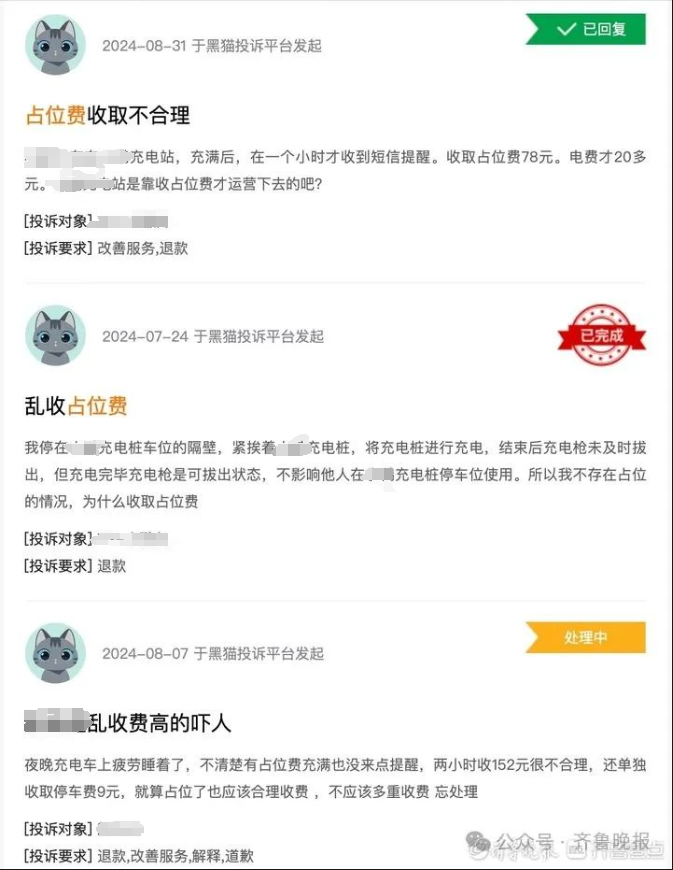 近年来,新能源汽车产销屡创历史新高,充电桩市场也迎来快速扩张,但相伴而来的,还有充电价格不透明、服务没保障等乱象,给车主带来出行焦虑。 比如,用超低电价吸引车主充电,然后收取高额服务费、停车费、超时占用费;一些充电桩必须先充值再充电,但退余额时却阻力重重,客服形同虚设……新能源汽车充电桩如何成了“充电刺客”?最近,河南郑州的张先生家附近新开了一家新能源汽车充电站。他本想趁夜间低谷用电期充电,但“占位费”也就是超时占用费,却让他不得不再度精打细算起来。张先生说:“有些地方会收停车费,前3小时免费,超过后按每小时收费。有的充电桩如果不拔掉充电枪,还会产生占位费。”为了规避可能比电费更高的超时占用费,张先生没少费心思。“别人充电都是插上充电枪后就出来了,我充电都是坐在车里,或是坐在休息厅,我就在那里等着,看看系统显示充到多少。”一直以来,新能源车充电被收取高额“超时占用费”引发不少车主热议。在社交平台上,部分车主反映在充电站充电后,因超时未拔枪离开,被运营方按分钟计算并收取了超时占用费,这让他们质疑收费太贵,以及运营方的收费标准是否符合相关规定。 记者查询发现,目前不同充电站点“超时占用费”收费各异,也有站点不收取此项费用;各家收费车企、第三方桩企收取的标准也存在差异,免扣款缓冲时间亦有不同;一些车主还反馈,首次超时占用费减免,或向平台申诉,最终并未被扣款。因收取“超时占用费”每小时最高达384元,某新能源车企曾一度备受争议。记者致电咨询该车企客服,客服表示这一费用会持续累加、上不封顶,建议用户充完电尽快挪车,如不具备立即挪车的条件时要谨慎考虑充电。“在您充满电之后,5分钟之内没有挪车,只要这个地方的占用率达到50%以上,就会收取3.2元/分钟的超时占用费,但如果占用率达到100%,就会收取6.4元/分钟的超时占用费。”客服表示,占用率是电桩识别的,目的就是为了避免有人占用,导致别人充不上电。 记者进一步询问客服,设置充电完成后5分钟内必须挪车,否则将收取超时占用费的时间限制,是否条件过于苛刻、有营利的考虑?对此,客服强调,这一政策并非出于营利目的,而是为了维护车主的权益:“因为这跟充电桩的投入完全不成正比。我们实施超额占用费的规定已经做了很久,很多车主对此都有所了解。第一次产生费用时,会给您发邮件,无论费用多少,系统都会自动免除;但是免掉之后,再出现第二次,就不能再免了。”记者在黑猫投诉平台搜索发现,有过类似经历的网友不在少数,大家普遍反映的问题为“充电站缺少占位费醒目提示,且收费缺乏标准,价格普遍过高”。除了超时占用费,一些收费提示不够醒目的服务费也被称为“充电刺客”之一。不久前,新能源车主林先生就有类似经历。“我开车转了一圈,刚好看到一个充电桩,然后就开始充电,接着就去吃饭了。吃完饭回来结账时发现要支付139元,这个价格我觉得有点贵,因为通常充电大约60元左右就能充满。”林先生研究了收费明细,发现费用里不仅有充电费,还有占位费和服务费。对于占位费收取二十几元,林先生表示理解。但他在联系客服后发现,账单里还有50多元的服务费。“这就相当于我去加油,加了500元的油,然后还有500元的服务费。”记者调查发现,目前多数充电站的充电费用包含充电费、服务费和停车费三项,部分站点停车免费。其中,服务费到底“服务”了什么? 记者以车主身份咨询了一家新能源汽车公司,客服解释说,收取服务费主要是为了维持充电站的正常运营,站点建设以及维护充电设备都需要投入一定的成本。“至于不同站点服务费价格存在差异,主要与场站位置的远近、使用时间段以及运营成本的高低有关,它产生的这些费用也会运用在我们站点的维护当中。”目前,在新能源车充电桩领域,“退费难”问题尤为突出。有报道显示,一些充电企业在系统中为退费设置种种障碍,侵害消费者权益;甚至有些企业直接设定“霸道条款”,推诿扯皮,拒不退费。据媒体报道,今年6月,广西柳州市的一家电动汽车充电站运营商和三家电动汽车充电场站发生“卷款跑路”事件,涉及车主预充值资金50多万元,难以追索。“充电刺客”是如何形成的?业内人士刘先生透露,充电桩的建设和维护成本较高,通过电价收入往往难以覆盖这些成本,“刺客”现象是市场竞争激烈和监管缺失的结果。“现在充电桩行业的竞争非常激烈,各家都想抢占市场份额。为了吸引消费者,一些企业可能会采取低价策略,但低价往往意味着服务质量下降和成本压缩。这就容易导致一些企业采取其他手段来获取利润。”刘先生建议,相关部门应当加强监管,规范充电桩企业的行为,同时企业也应加强自律,提升服务水平。