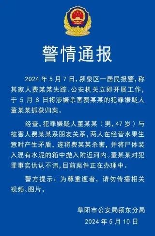 今年5月,安徽阜阳发生了一起“水泥封尸”案。