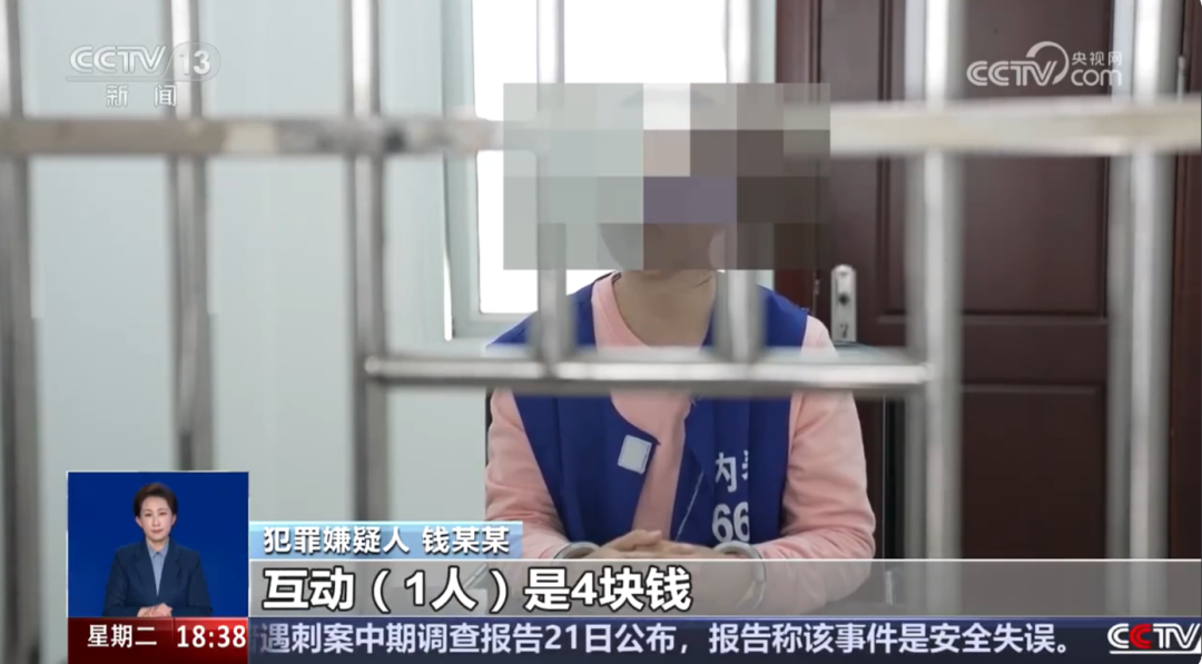犯罪嫌疑人钱某某表示,“(我们)3种业务比较多。一种是挂榜,就是进直播间挂在那里,就是送人数;第二种是互动,除了挂在那里,还需要说话;第三种是广场,就是从广场页面进直播间。我们的收费标准:挂榜(1人)是3块钱,互动(1人)是4块钱,广场(1人)5块钱。”