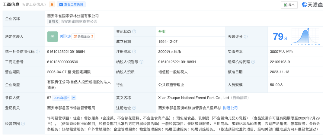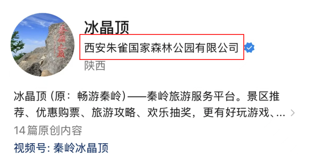 去查了一下,冰晶顶的官方公众号关联的运营公司为「西安朱雀国家森林公园有限公司」。