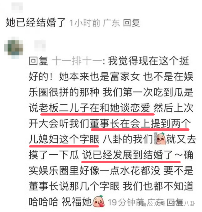 有自称公司员工的网友爆料称,乔欣和男友确实已经发展到结婚,董事长还曾在大会上提到过“儿媳妇”这样的字眼。
