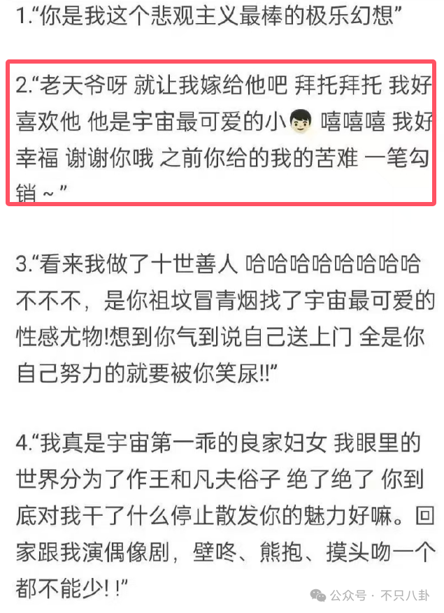 乔欣还开了个微博小号,专门记录少女的恋爱心事。最经典的大概就是那句:“老天爷呀,就让我嫁给他吧!拜托拜托!”