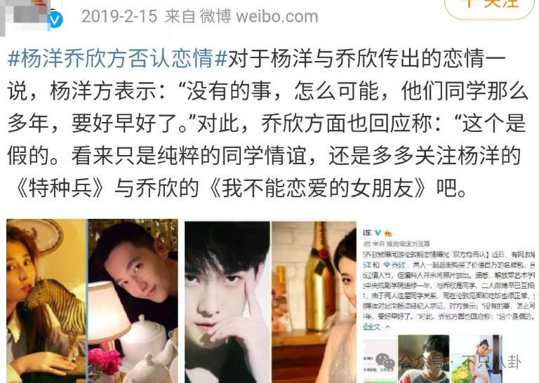乔欣之前那段古早恋情还蛮让人印象深刻的,有网友扒出来杨洋乔欣谈过恋爱。