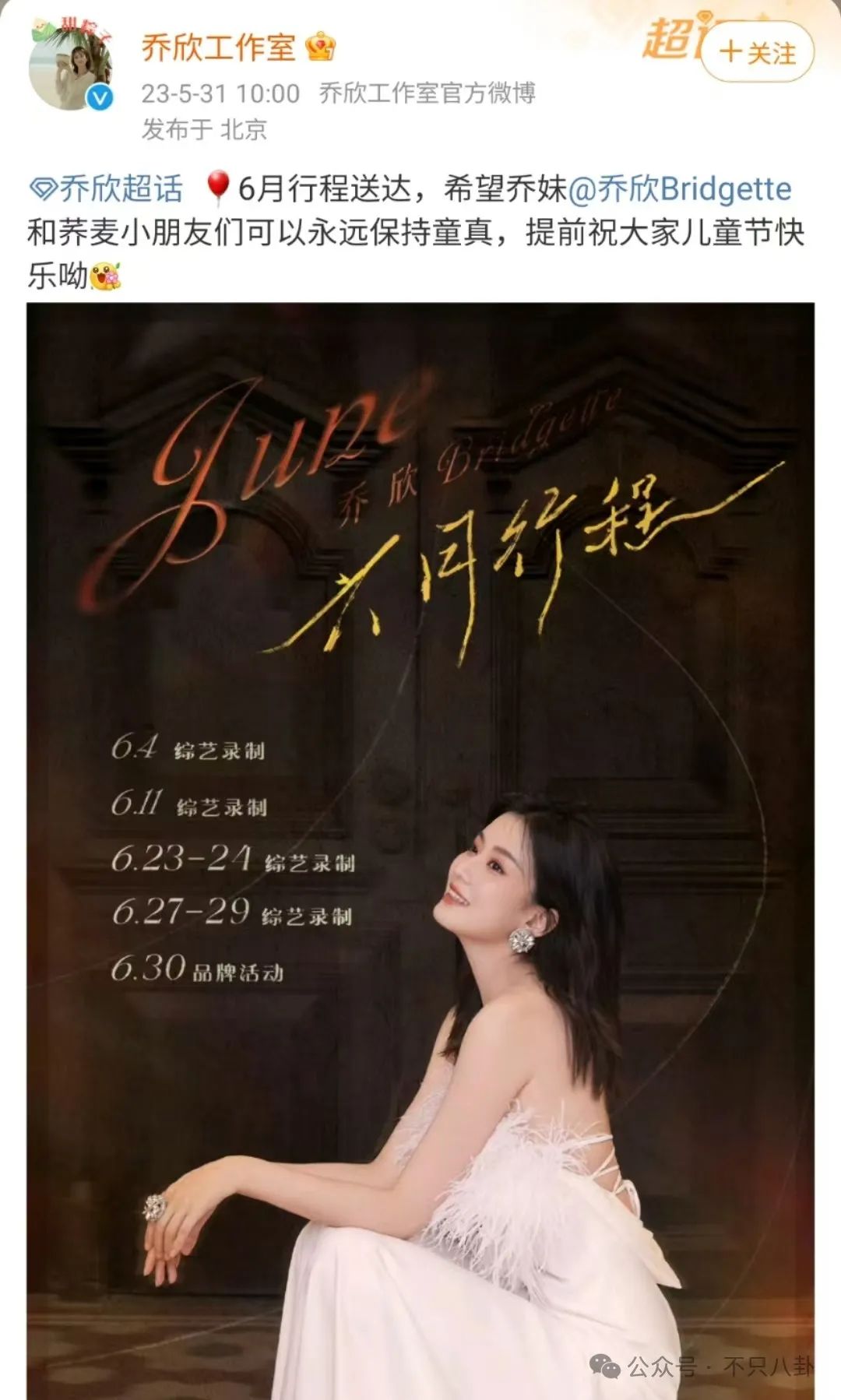 自从去年6月起,工作室不再更新乔欣的工作行程。