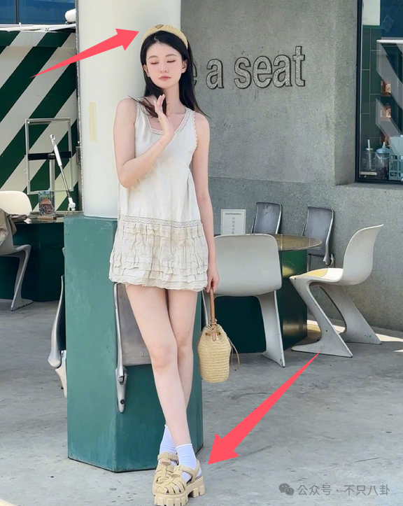 巧就巧在,网友爆料之前,乔欣曾在社交平台上发过自己的一组美照,厚底凉鞋+白袜子+杏色发带造型,全都对上了。