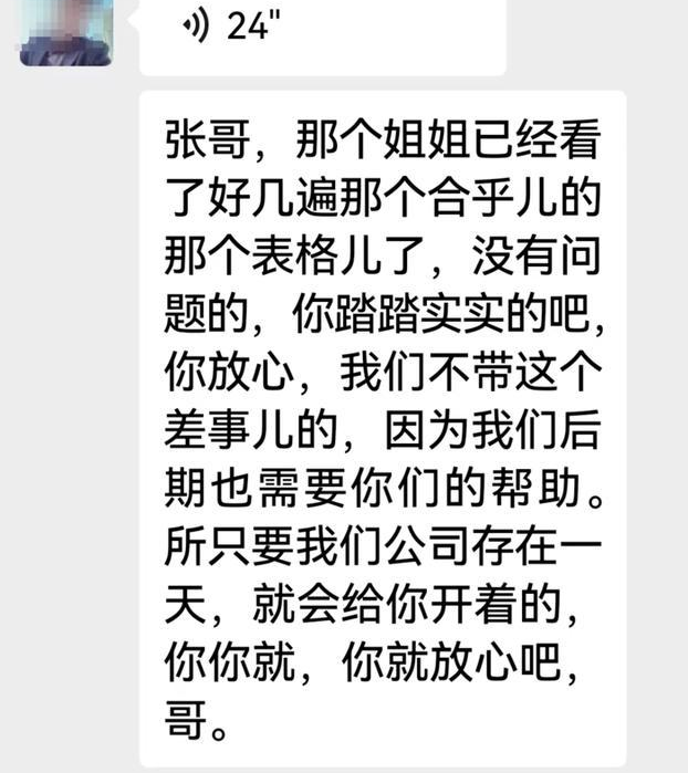 在对方不断劝说下,许多人都心动了。张大爷也再三和介绍的中间人确认,公司承诺的工资、旅游VIP卡和返租能否兑现,对方表示“只要公司存在一天都保证”。