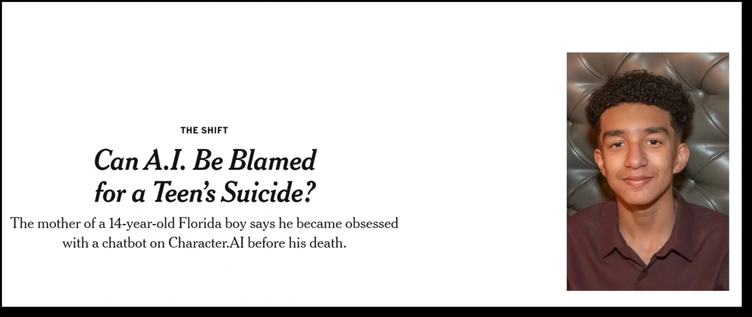 当地时间2024年10月23日,据外媒报道,美国佛罗里达州的14岁少年塞维尔·塞泽(Sewell Setzer III)在与Character.AI的聊天机器人进行长时间对话后,于2024年2月28日开枪自杀身亡。