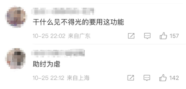 而质疑的网友则认为, 该功能有“助纣为虐”, 鼓励出轨的嫌疑: “谁正常订房间要焚啊?” “干什么见不得光的要用这功能”。