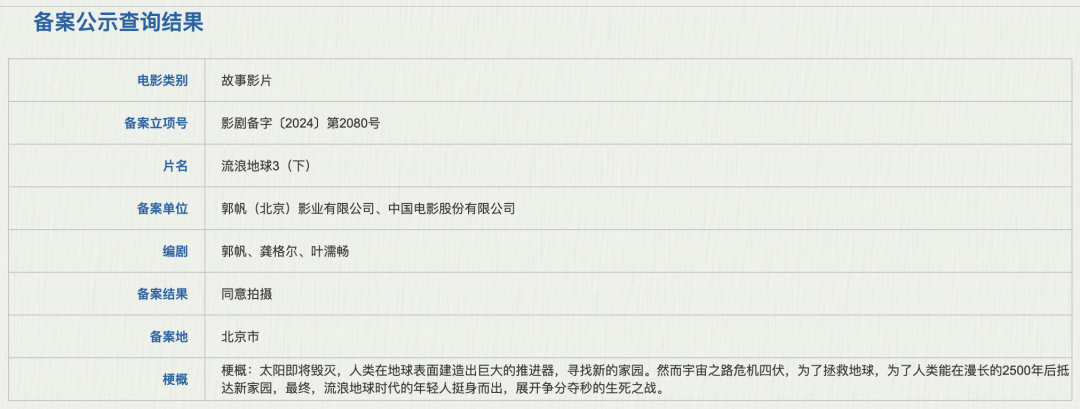 11月7日,国家电影局官网发布了关于2024年9月下全国电影剧本(梗概)备案、立项公示的通知。