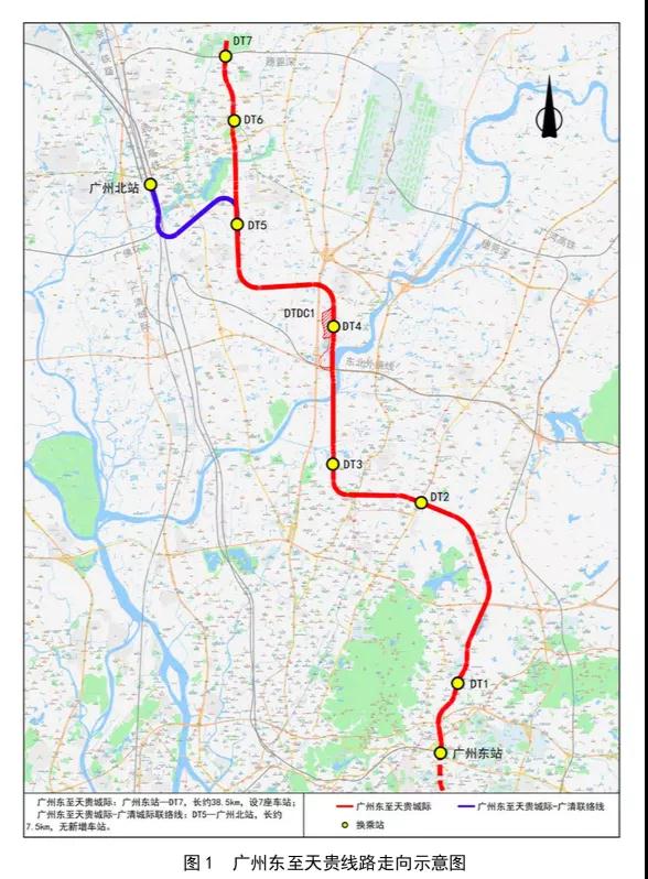 (注:广州东至花都天贵即广州地铁18号线北延段,芳村至白云机场即广州地铁22号线北延段。)