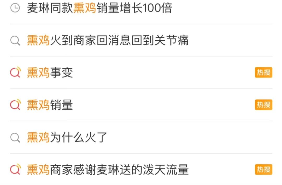 近日,芒果tv情感真人秀《再见爱人4》嘉宾麦琳的表现引发网友热议,她在节目中购买的同款熏鸡也迎来了“泼天富贵”。在节目旅程进行期间,麦琳以自己不用担责任、人生要放纵为理由,在高速服务区疯狂购物,买了两只熏鸡、咖啡和奶皮子,但在此前,其他嘉宾买东西都会被麦琳“审判”,于是引发网友痛批,称麦琳过于双标。在社交网络,人们纷纷开始讨论“到底是什么熏鸡这么关键”,网友已经涌向了网购平台。在得出节目组嘉宾是在内蒙古乌兰察布卓资县购买熏鸡的结论后,在网购平台,某品牌旗舰店已经打出“再见爱人麦麦熏鸡”的字样,截至11月15日,相关产品的销量显示已经超过10000。内蒙古某熏鸡有限责任公司的负责人告诉记者,因为麦琳的事,最近熏鸡的销量可以说是突飞猛进,销量增长了大致100倍,原来一天可能卖几十、几百只熏鸡,现在每天已经能卖上千只。近日的“鸡熟食热销榜”中,前三名有两位都是熏鸡,可见麦琳带来的泼天流量。商家当然都会大力宣传产品、投放广告,但引发类似熏鸡这样的热议与购买狂潮的案例并不多见。《再见爱人4》节目中并没有透露熏鸡的具体品牌,是网友们深挖产品细节,自行搜索、推理和考证嘉宾购买和品尝的具体是哪个地点、哪个品牌的食物。