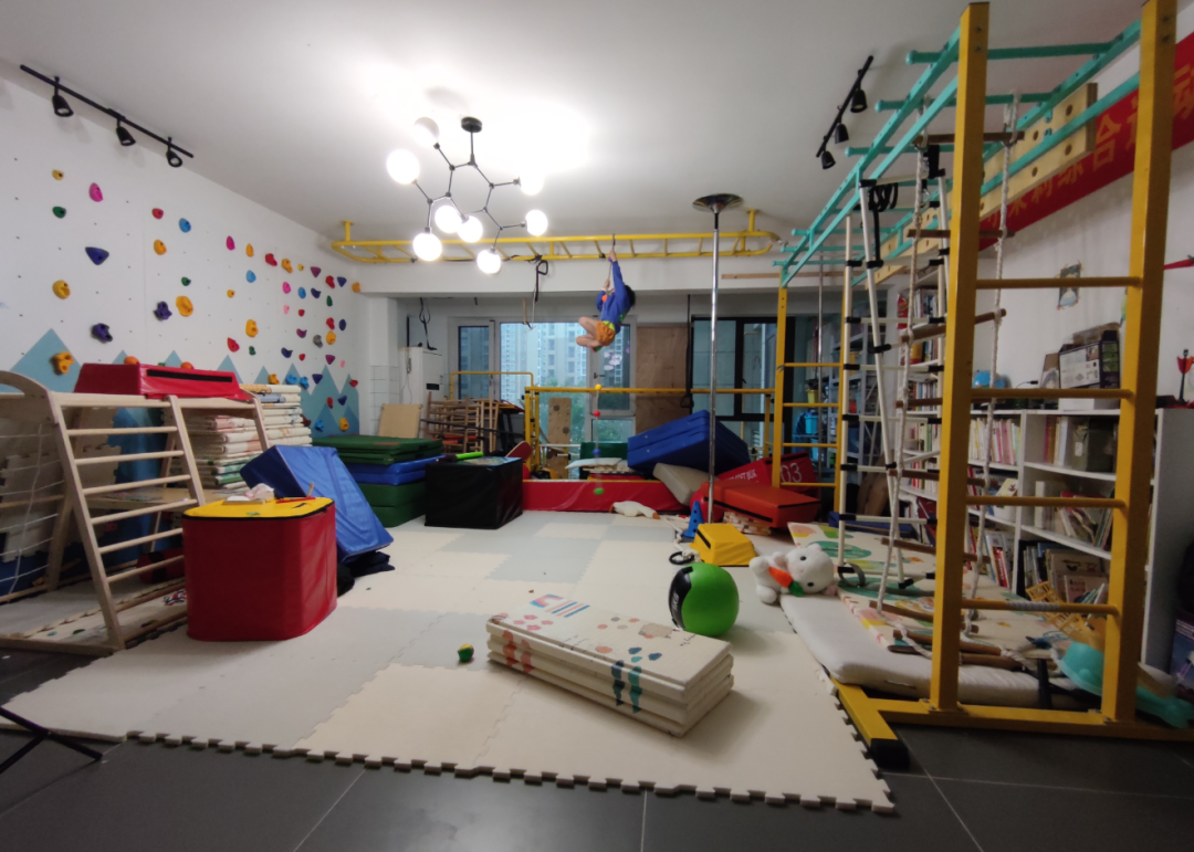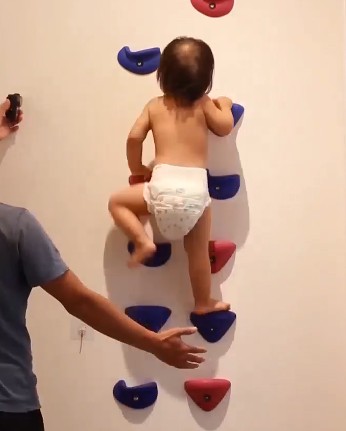来到小茉莉家中,一眼望去,客厅里几乎全是各类攀爬架,未摆放电视,反而有一整面攀岩墙,“都是这几年慢慢置办的,小茉莉每天都在这上面玩。”