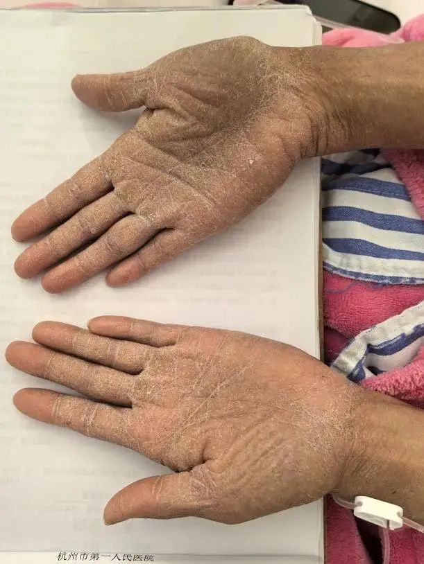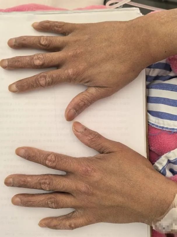 35岁的黄玲年轻漂亮,是一名热爱运动的宝妈,近来总感觉浑身没力,肚子也总是胀胀的。一开始,她以为是自己照顾孩子太累了,并不上心。不过最近,她的身体发生了变化,浑身上下的皮肤都是黑黢黢的,但又不同于阳光晒过的古铜色,尤其手掌和脚底格外明显,又黑又粗糙。此外,她还出现了发热、月经不调、手脚麻木、胃口不好等症状,于是她来到杭州市第一人民医院就诊。从检查结果来看,黄玲的红细胞、白细胞和血小板均低于人体正常范围,同时存在内分泌功能紊乱、肝功能异常、腹水、周围神经病变等多系统损害。但黄玲的免疫指标、肿瘤指标、微量元素等一切显示正常,也没有发现常见的感染、肿瘤、风湿免疫性疾病的迹象。