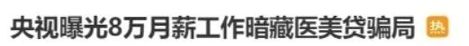 近日#央视曝光8万月薪工作暗藏医美贷骗局#登上热搜,让这类“高薪”骗局被曝光在人们面前。