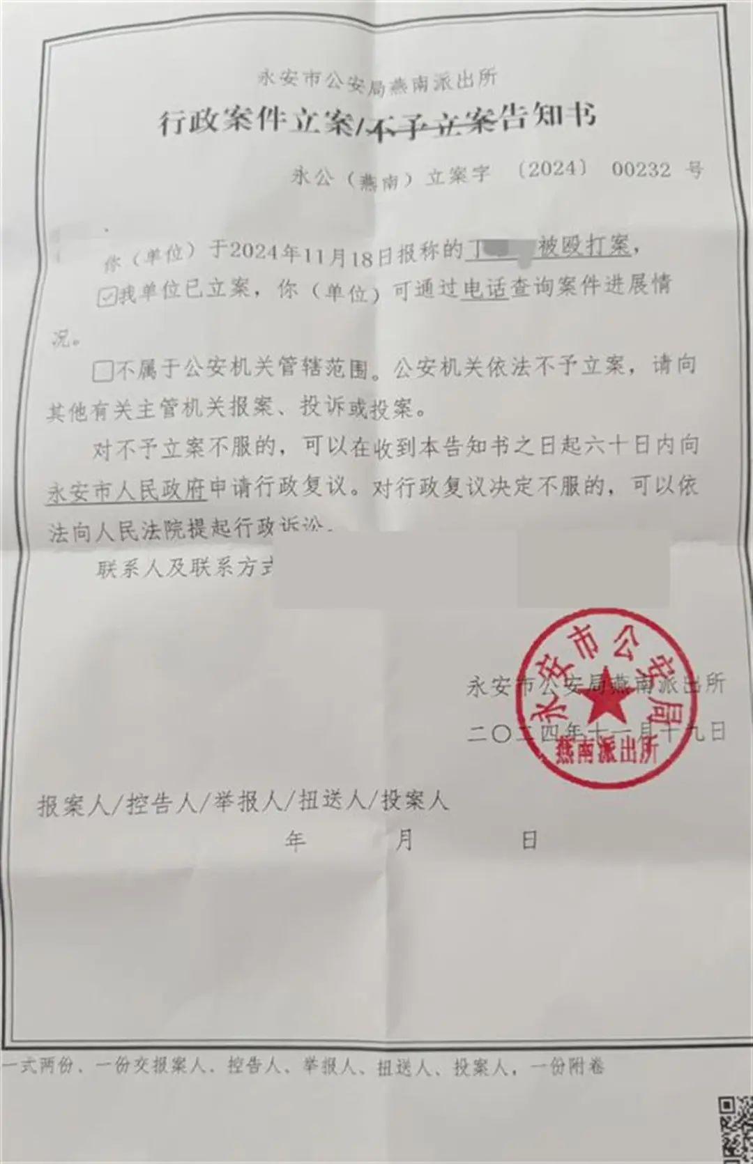 行政立案告知书(受访者 供图)