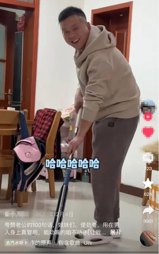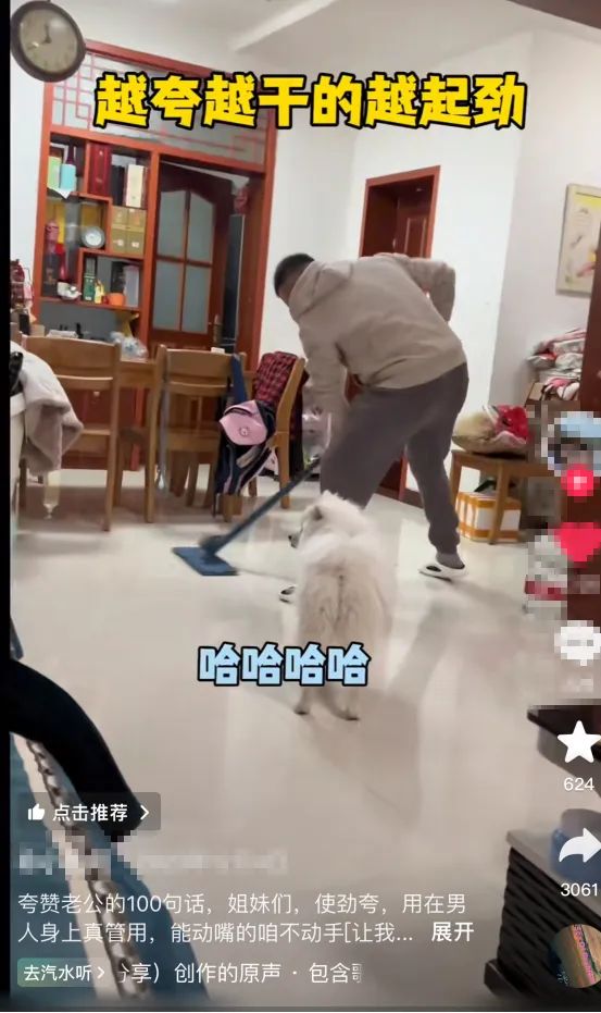 这下老公干活更带劲儿了,拖把哐哐造,越夸越干得起劲。