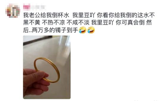 可能丈夫之前没有听过这样受用的话,一开始还有点不习惯,愣了一下,但很快就笑了。