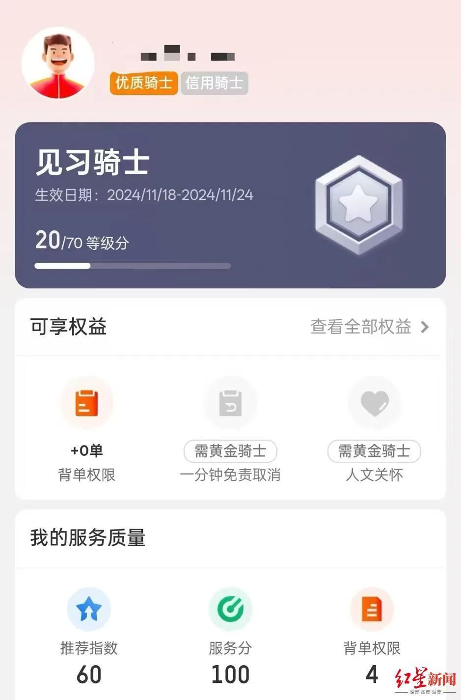 “送外卖也讲究经验和技巧,还分等级,接了一定数量的单,还会从新手骑士升到青铜骑士、白银骑士、黄金骑士。”