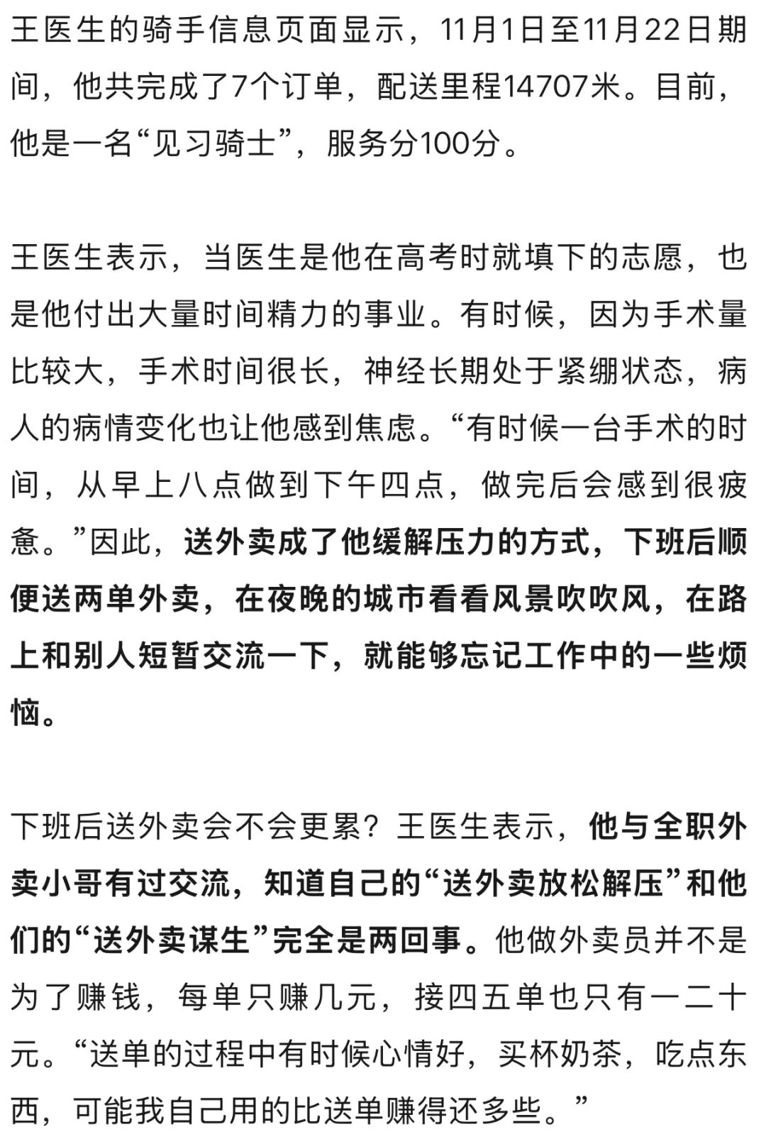 送外卖“解压”的外科医生发声:两份职业都能看到人间百态,都需要强大心理! ...