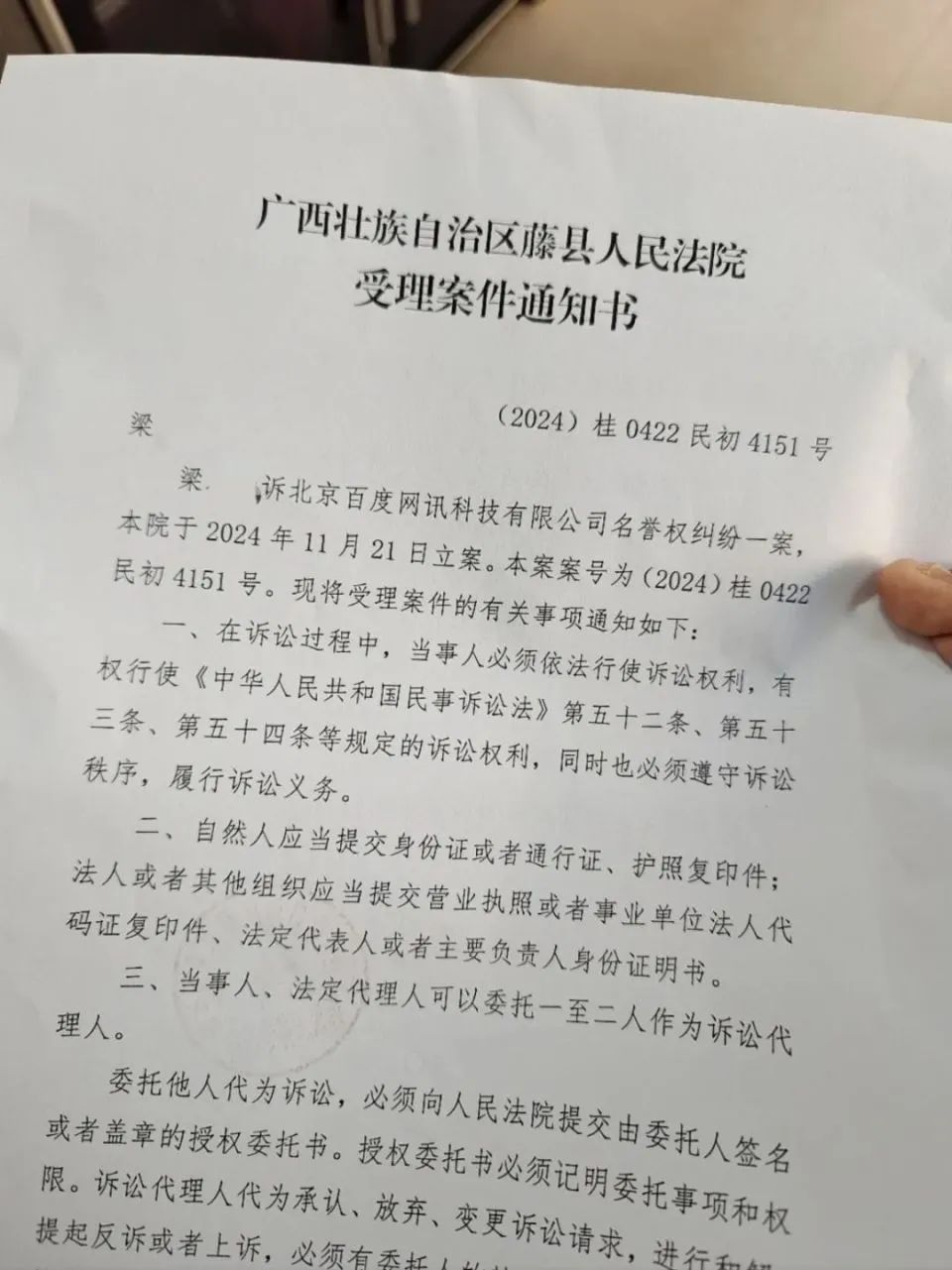 11月21日,被造谣“不退彩礼遭泼硫酸”的女生小梁发帖称,她以网络侵权责任纠纷为由,向广西藤县人民法院起诉北京百度网讯科技有限公司(下称“百度”)。